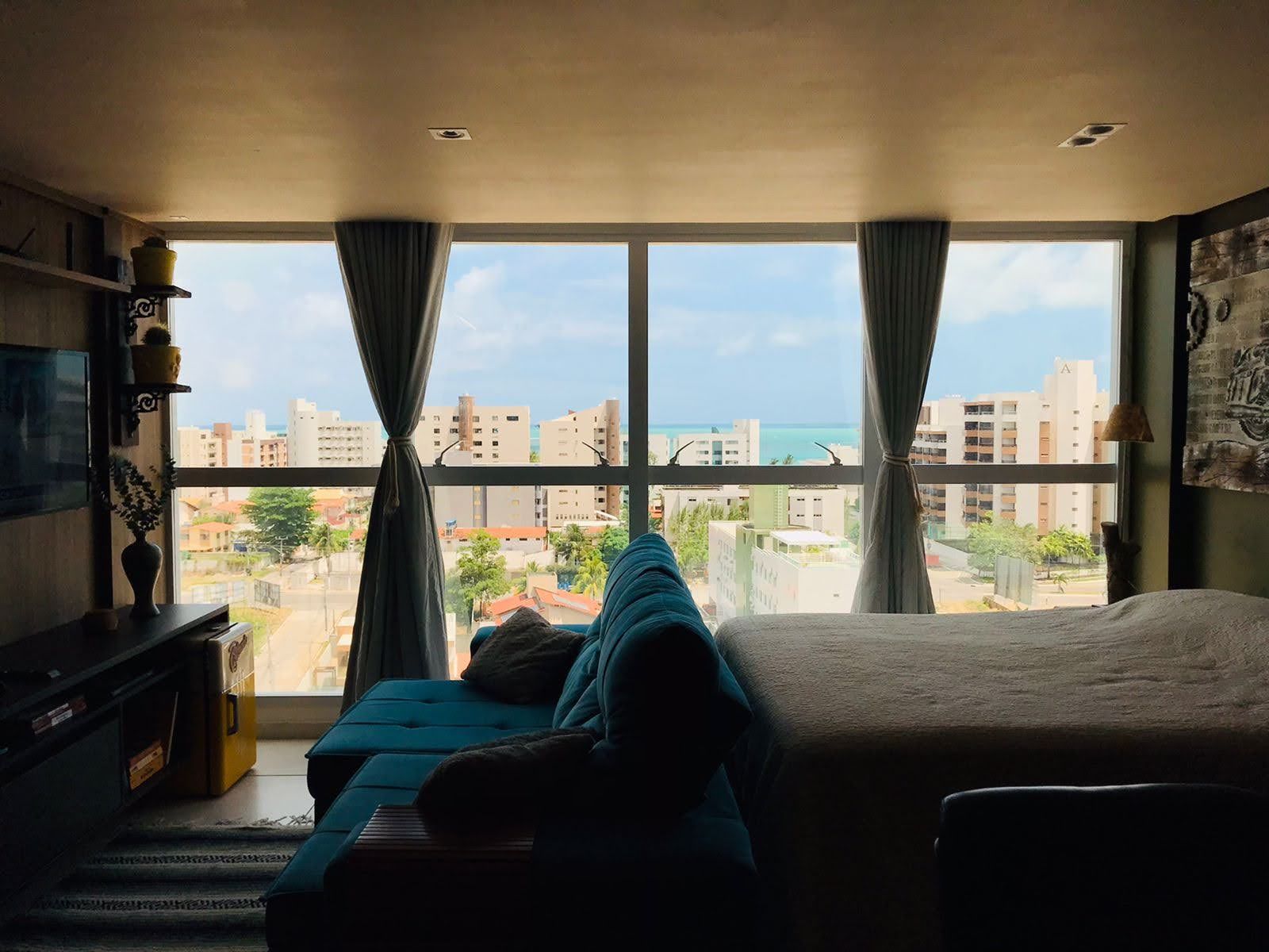No condomínio tem piscina, e na cobertura uma vista linda de João Pessoa.